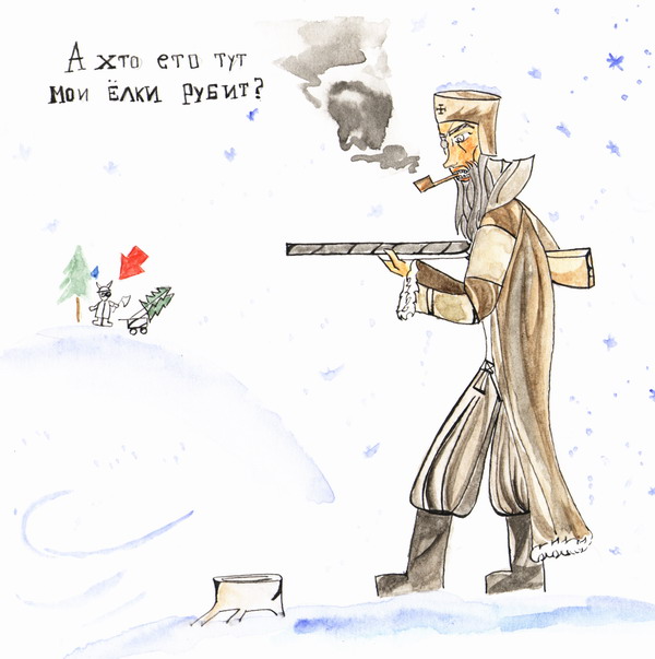 - вот такой вот добрый и ответственный лесник, ходит, присматривает за елками.