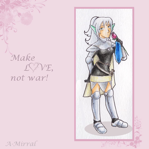 - ... Юлианки прерываю выпуск постебушек (хотя, как видно, их дух меня не покинулЪ!). Просили нарисовать Рыцаря в юбке с платочком и розой (Юлианка, платочек и роза на рисунке присутствуют, миссия выполнена ^_^), остальное оставили на мой выбор - надеюсь, не переборщила. Цваточки на йозовом и избитая фраза пришли сами собой (а, вообще, к этой фразе и этой Юлианке фоном просились нашинкованные в капусту мобцы какие-нибудь...)