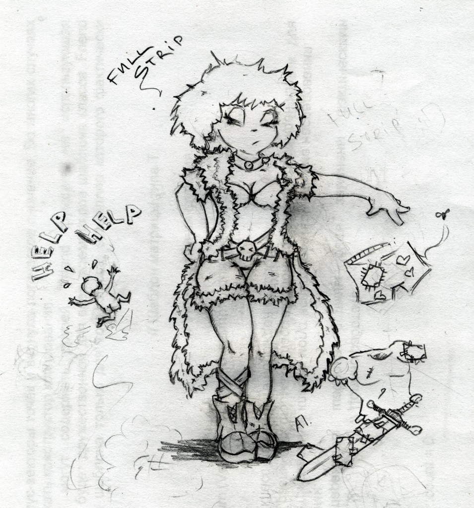 А мне интересно кем обстрипаный был: труселя - вроде хунт, но меч - значит мечник, но доспехи вообще в оборочку - еще и девушка О_о Эх жалко красок не подарили, няяяя